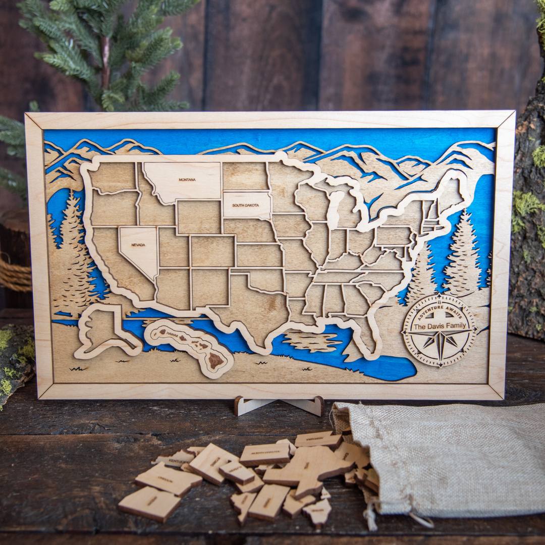 DIY World Travel Push Pin Map, Color by State Tracking, Family